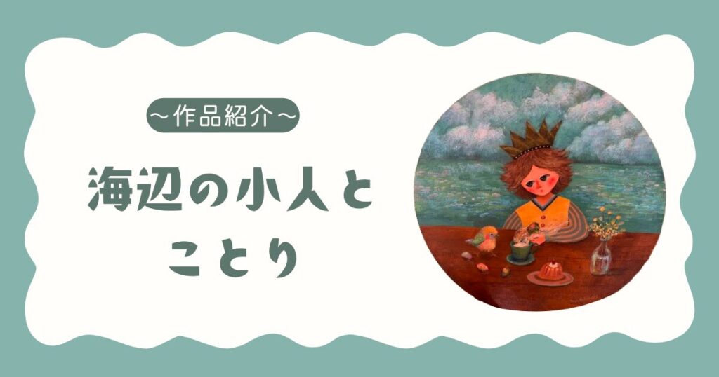 ホッと癒される空想アート|小人と小鳥の海辺カフェの絵を描きました【絵画紹介】