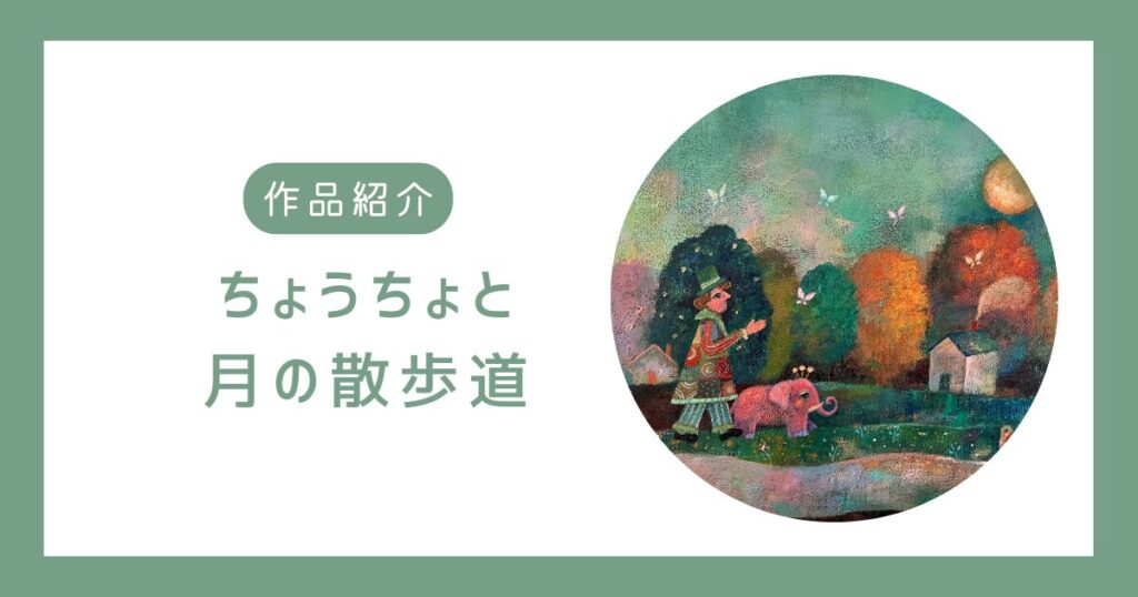 【作品紹介】ちょうちょと月の散歩道を描いたアクリル画